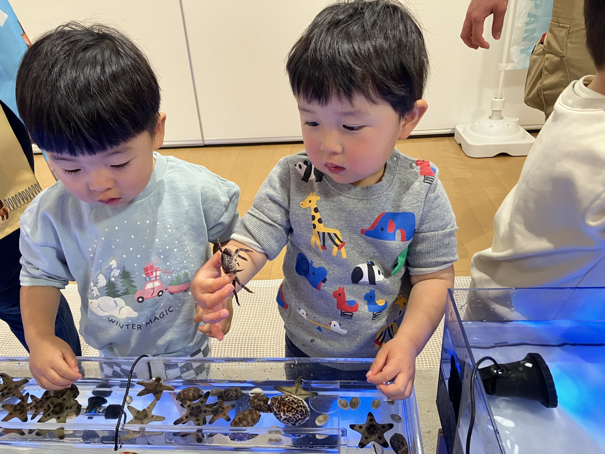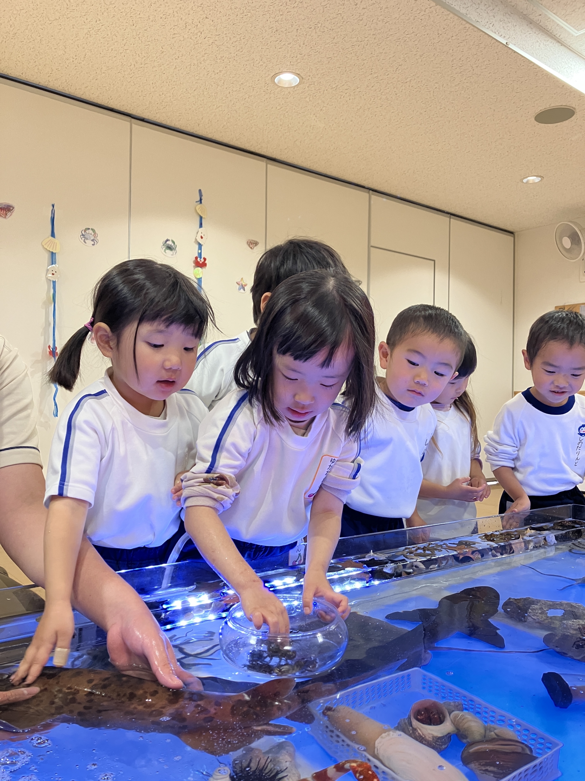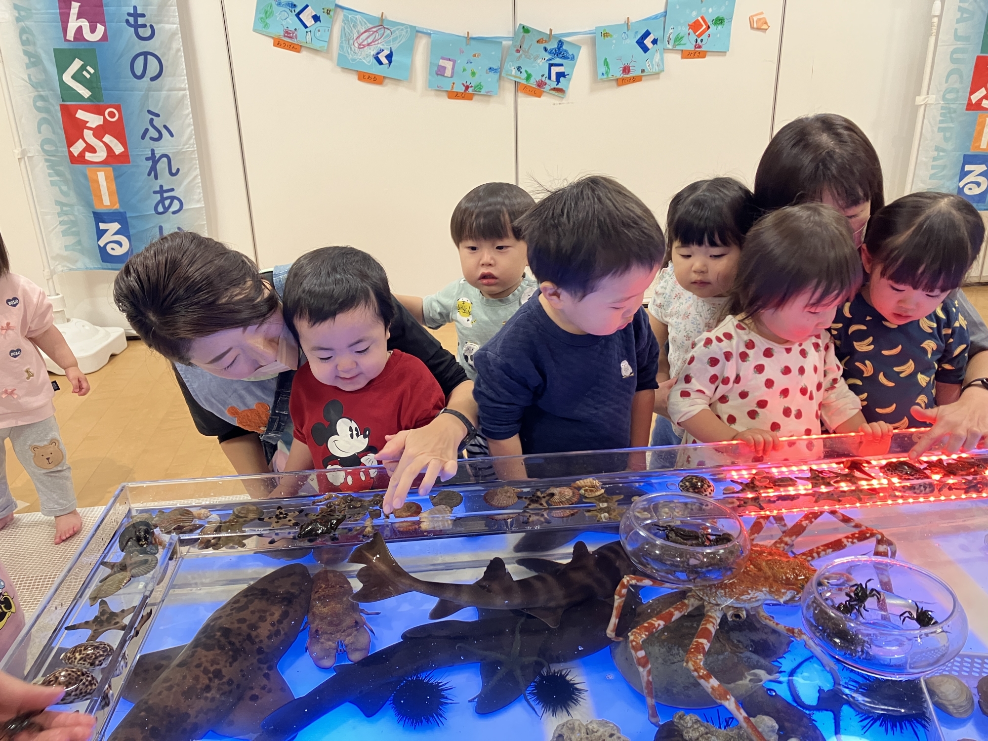 水槽の中のお魚たちに、興味津々の子どもたちです
